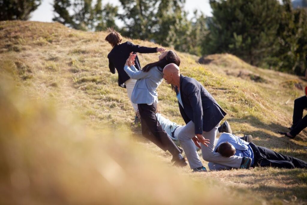 dancers, tour-guides DOWNHILL since 2015: Andrea Boll, Ivan Blagajcevic, Chris de Feyter, Hella Immler, Dina Sennhauser, Rakesh Sukesh, Emeric Rabot